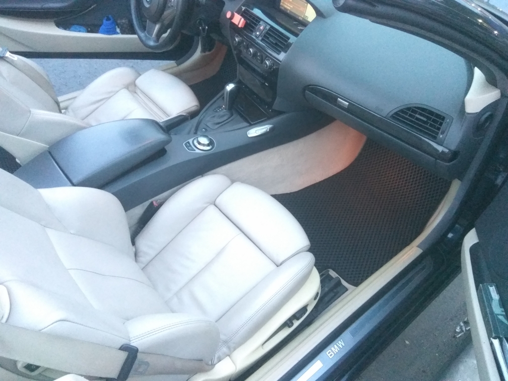 EVA коврики для автомобиля BMW 6 II (E63/E64) 2003-2010 в Москве — это лучший выбор. Покрытие из этого ячеистого полимерного материала покупают сотни автолюбителей. Коврики из ЭВА долговечные, прочные, красивые. Сроки службы изделий — от 5 лет. Коврики защищают пол автомобиля от грязи и влаги, а салон — от лишней пыли.